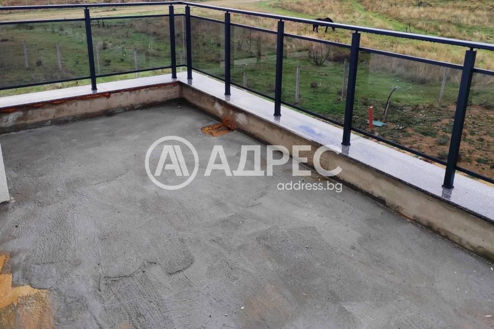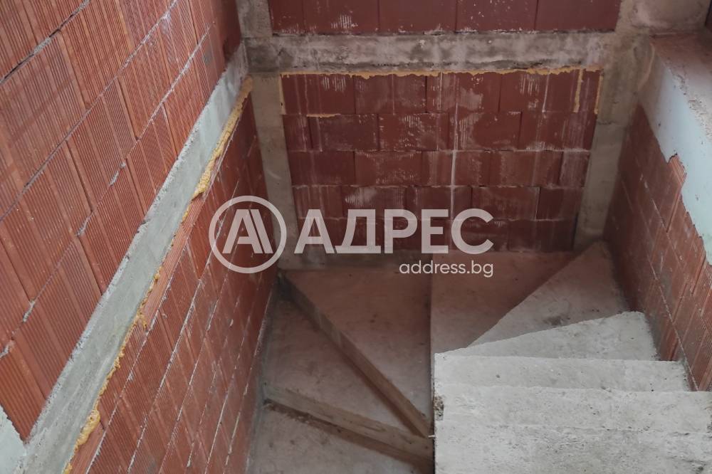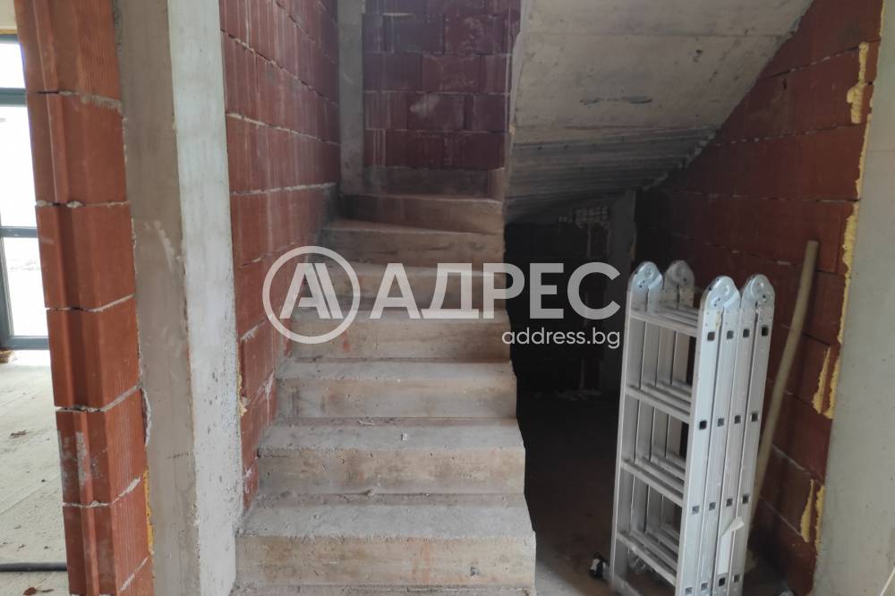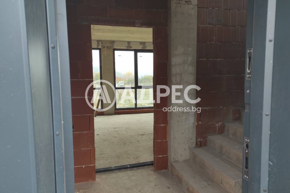 Агенция Адрес недвижими имоти предлага за продажба двуетажна къща ново строителство с акт 16 в началната зона на с. Изгрев. Къщата е с РЗП от 200 кв.м, застроена площ от 100 кв.м. и построена върху парцел с площ от 573 кв.м.На първия етаж са разположени баня с WC,кухня с трапезария,дневна (хол),килер, сервизно помещение и външна веранда.На втория етаж са ситуирани две бани с WС,три спални,гардеробна към едната от спалните и две тераси.Имотът се продава в следния вид: