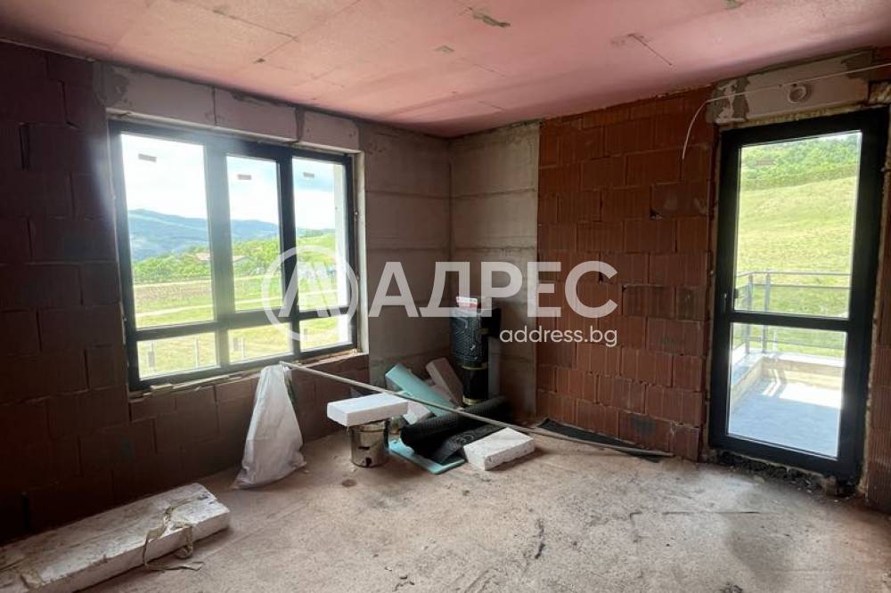 Второ ниво/етаж: коридор, три спални помещения, от едната с излаз към голяма тераса с прекрасна гледка, от другите две с излаз към втора по малка тераса, дрешник и две бани с тоалетни. С отделен вход е обособено помещение, което може да се ползва като склад, мазе, мокро помещение.