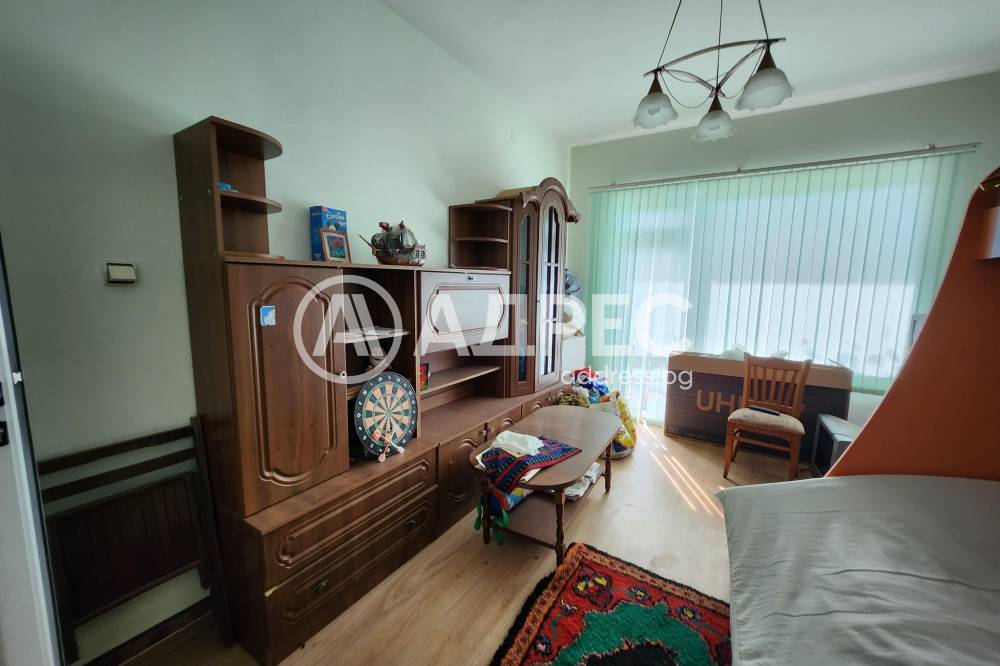 АДРЕС предлага за продажба: Двуетажна тухлена къща, със ЗП от 140 кв.м., разположена в дворно място от 900 кв.м. Основният етаж се състои от кухня, спалня, хол, два санитарни взела и коридор. Подови настилки - ламиниран паркет и теракота, стени - латекс и тапети. PVC дограма. Санитарните помещения са на фаянс и теракота. Разполага с тавански етаж - който е на тухла и има нужда от довърштелни дейности. Под къщата има мазе, от две стаи.