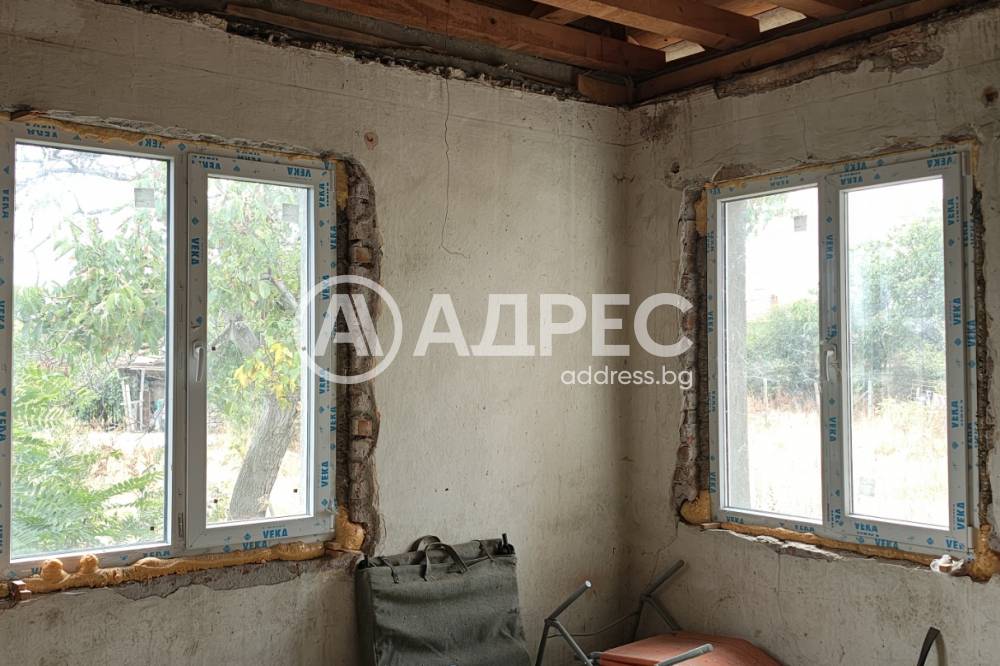 Къща с двор от 1325 кв.м. Състои се от масивна тухлена къща, сутерен /изба/ и първи етаж. Изцяло нов покрив, външна изолация, сменена дограма, другото е оставено за довършване от новия собственик по негово желание и вкус. Парцелът е с правилна форма, позволява изграждането на други постройки и гараж. Има канализация!