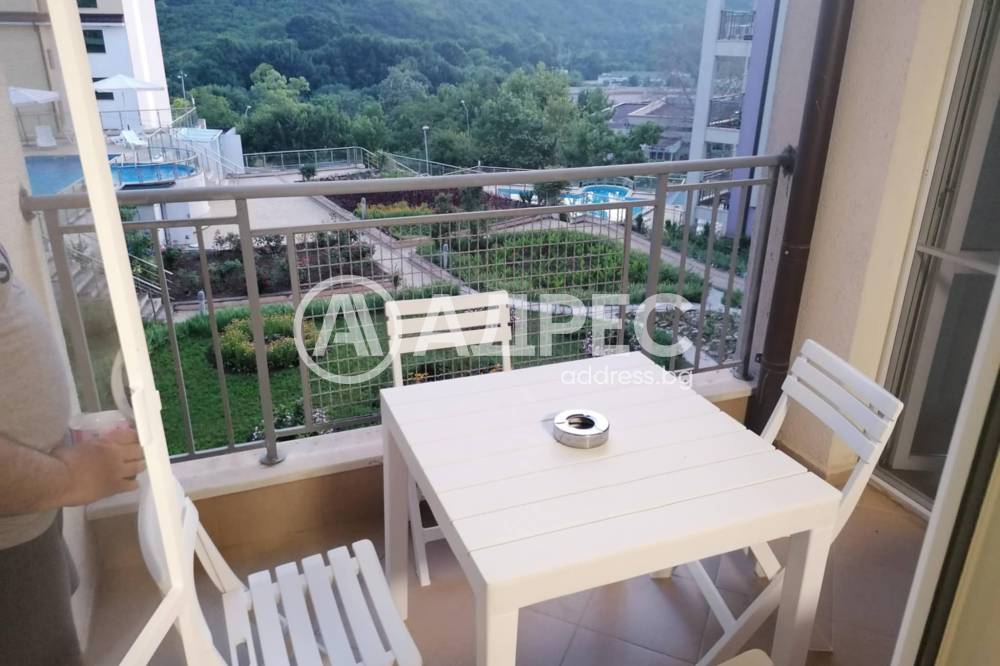 Апартаментът е с южно изложение и се състои от всекидневна с кухненска част, баня и тоалет, спалня, втора спалня с дрешник и баня и тоалет, тераса с излаз към басейн и горска панорама.Към апартамента има и прилежащо избено помещение. Апартаментът се намира в комплекс от затворен тип с два басейна, детска площадка и барбекю зона за всички живущи в комплекса.
