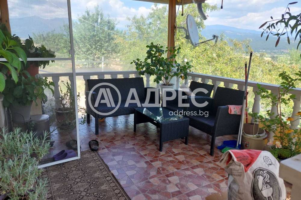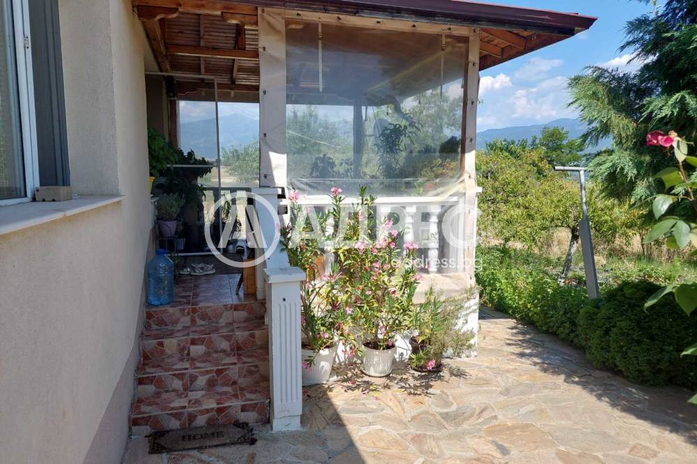 Агенция АДРЕС недвижими имоти предлага за продажба къща(вила) с просторен парцел в гр. Кочериново.Градът е административен център на община Кочериново.Намира се на 90 км южно от София и на 2 км източно от европейския път Е 79. През града минава пътя за Рилския манастир. Край него протича река Рилска. Къщата е едноетажна и се намира във високата зона на града откъдето се разкрива прекрасна панорамна гледка към Рила планина и целия град. Дворното пространство се състои от два парцела с площи от 456 кв.м и 409 кв.м красиво и стилно уредено с разнообразни растения за озеленяване,цъфтящи градински цветя и с овощна градина с различни видове и сортове овощни дръвета. Къщата се състои от стилно обзаведена веранда, трапезария,кухня ( с камина на пелети с централна инсталация за отопление и разтегателен диван),детска стая,дневна-хол с разтегателен диван ,спалня,помещение за багаж и баня с WC.Къщата е с много добра вътрешна изолация на стените и на тавана с гипсокартон и вата. Покривът е отремонтиран основно с много качествени материали за изолация.