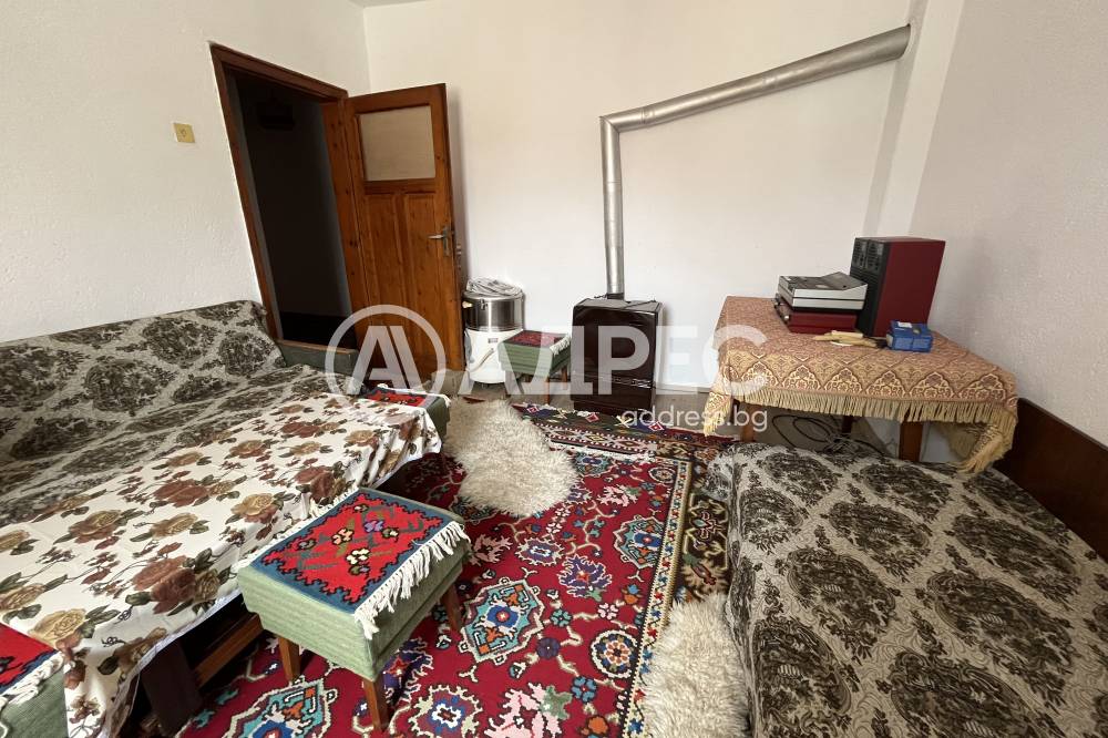 Адрес продава първи етаж от монолитна къща със застроена площ 110кв.м., както и три стаи на приземния етаж. Основният етаж се състои от всекидневна с кухня, три самостоятелни стаи и санитарен възел. Дограмата е дървена, на пода има дюшеме. В приземния етаж има две стаи, които след ремонт могат за се използват за живеене и едно избено помещение. Къщата е без съвременни подобрения, но може да се обитава след козметичен ремонт.