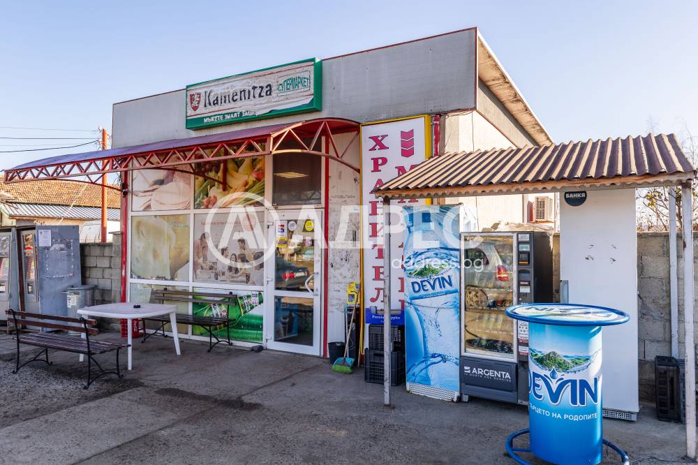 В имота е построена сграда с площ от 60 кв.м, която функционира като хранителен магазин. Магазинът е напълно оборудван и разполага с изграден навес, който предоставя удобство на клиентите.