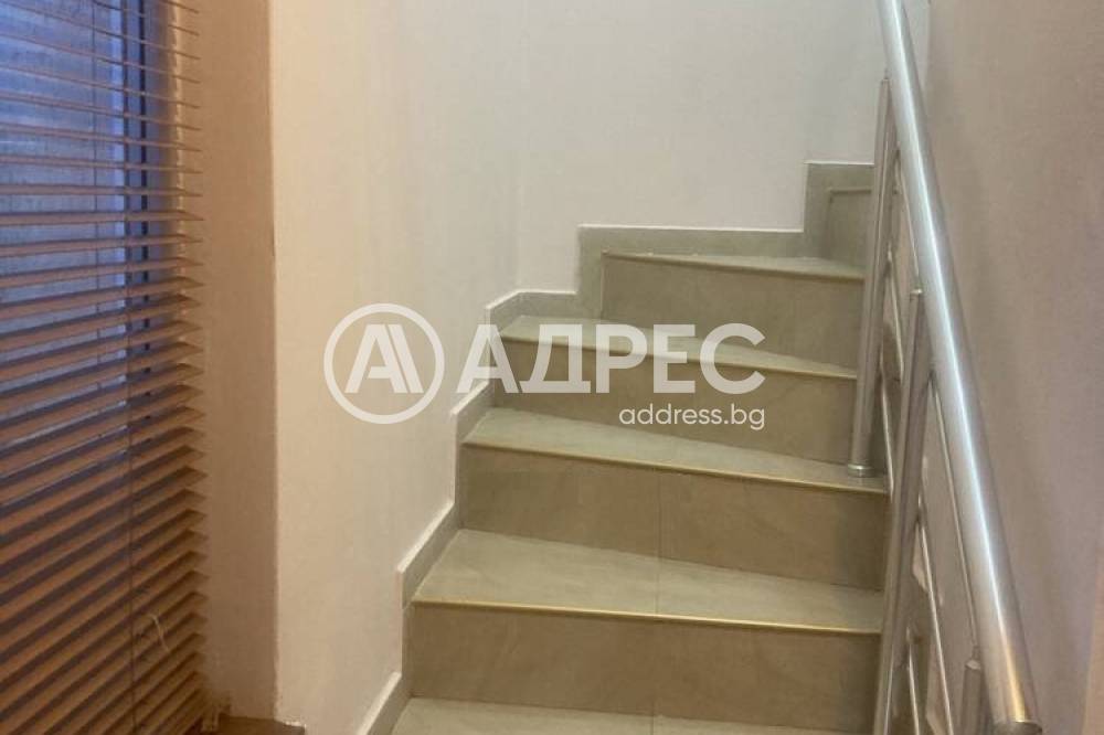 - първи етаж дневна с кухня и трапезария, баня с тоалетна и тераса, стълби към
