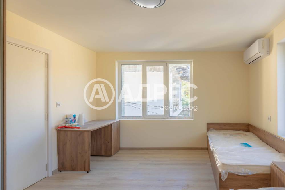 С площ от 110 кв.м., имотът разполага с уютна дневна, оборудвана кухня, баня с тоалетна, мокро помещение и две обзаведени спални. Отоплението е решено с 3 климатика. Голямото мазе с прозорци и подпокривното пространство дават възможност за преустройство (механа, допълнителни стаи). Къщата има 28 кв.м. гараж с веранда над него и двор от 149 кв.м.