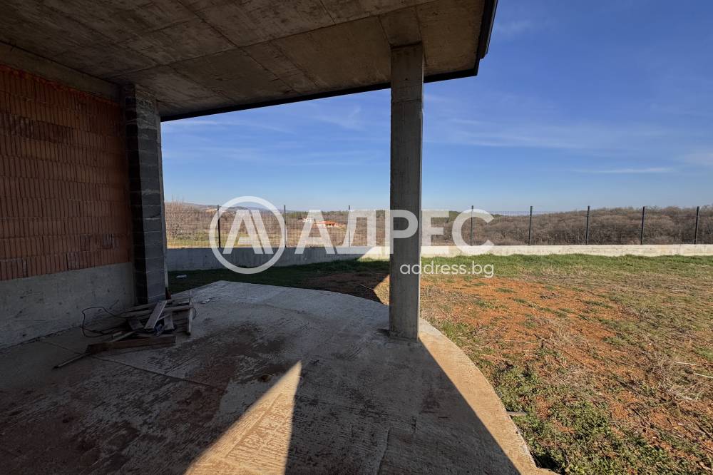Къщата е с разгъната застроена площ от 360 кв. метра, застроена площ 205 кв. м и разполага с голяма и светла всекидневна, ТРИ спални, две бани с тоалетни, дрешниk, мокро помещение и широка веранда, подходяща за почивка и семейни събирания. Построена е с висококачествени материали, с всички нужни инсталации – трифазно електрозахранване (30 kW), централно водоснабдяване, както и помпа за поливане на двора. Парцелът към имота е 820 кв. метра, с възможност за озеленяване, басейн, детска площадка или градина. Къщата е идеална както за постоянно живеене, така и за уикенд бягство от града.Имотът се предлага в този етап на строителство с издаден Акт 14.