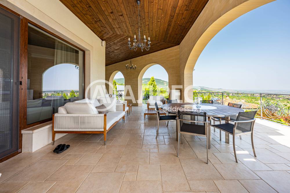 Къщата е разположена в най-високата точка на наклонен терен, така че дневната и терасите й гледат към града.