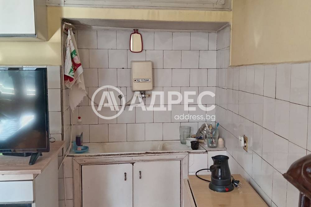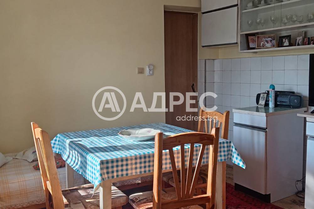 АДРЕС недвижими имоти предлага на вашето внимание едноетажна масивна къща, със застроена площ от 120 кв.м. и разположение от: голямо антре, обособена кухня, три спални, баня с тоалетна и избено помещение. В имота има още гараж, масивна стопанска постройка и добре поддържан двор с площ от 1119 кв.м, с кладенец и щерна.