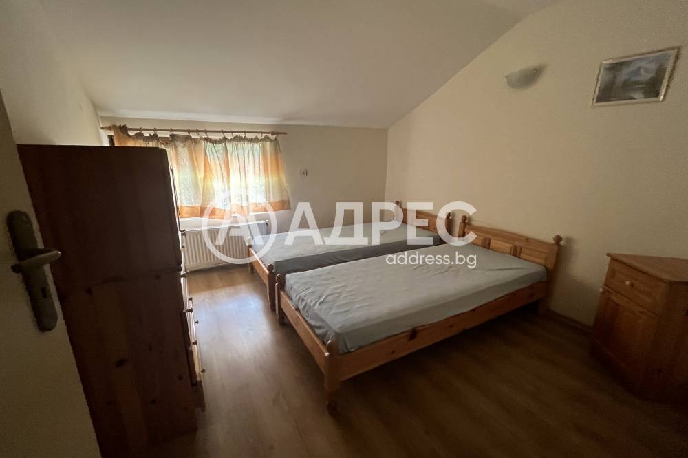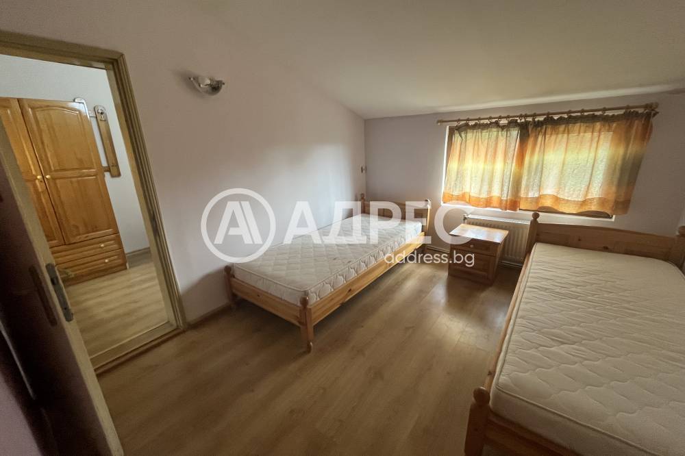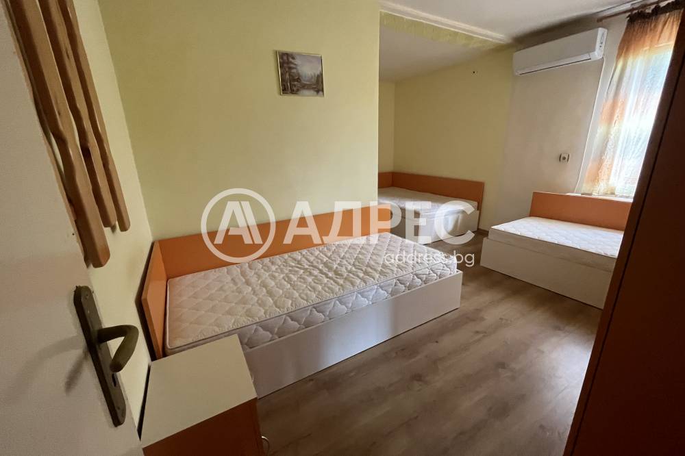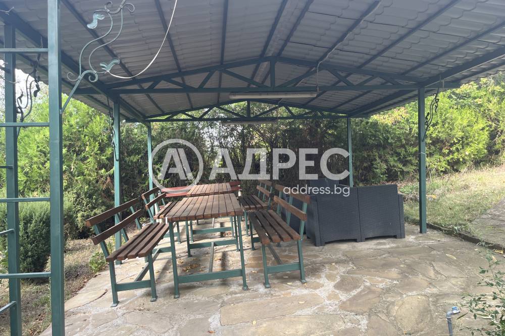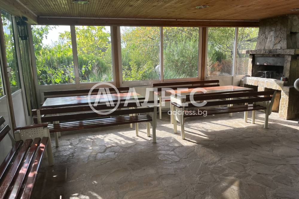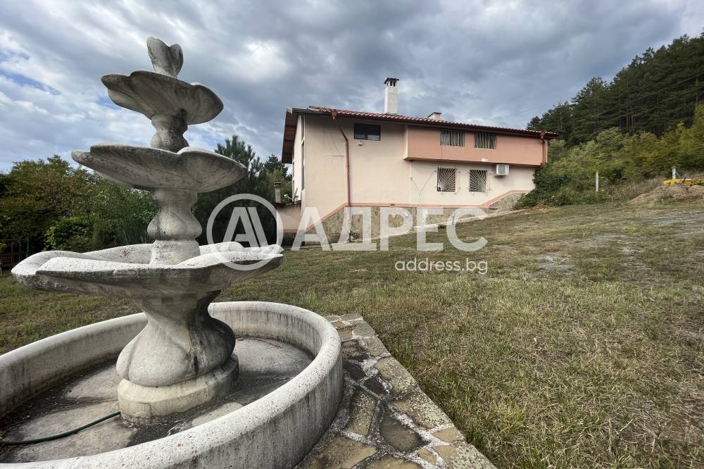 Масивна триетажна къща за гости в подножието на Стара планина. Сградата е монолитна, санирана, след основен ремонт. На партерния етаж е разположена голяма всекидневна с камина, оборудвана с електоуреди кухня и санитарен възел. Вътрешни стълби водят към първия етаж, където има дневна с камина, две спални и санитарен възел. Третият етаж се състои от четири спални. Отоплението е с локално парно. Парцелът е 2940 кв.м. В двора има обособен кът за барбекю, детски кът, басейн и допълнителни постройки.