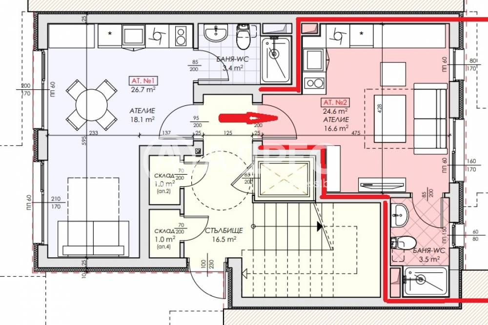 Площ на имота 32,99 кв. м., етаж 1 от 4. Състои се от антре, дневна с трапезария ии кът за спане, баня с тоалетна. Ще бъде завършен ДО КЛЮЧ - май 2026 г.