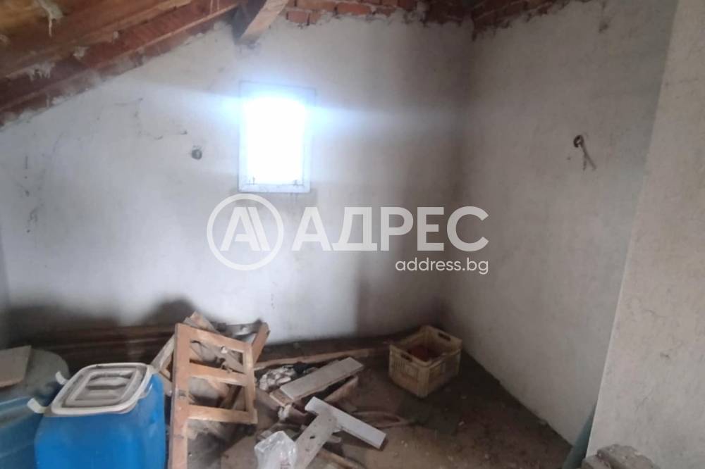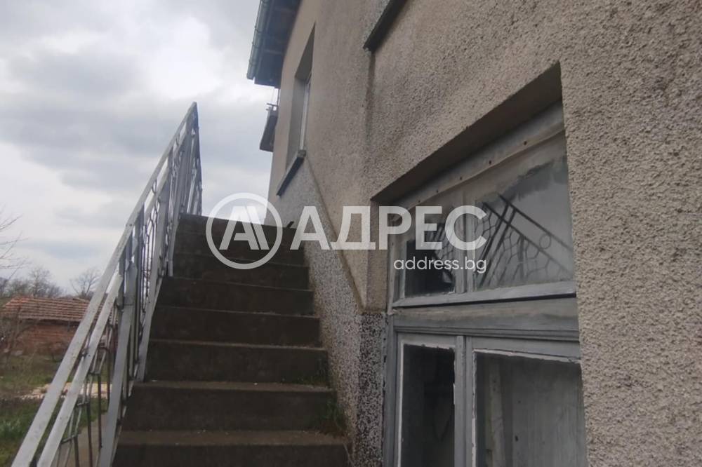 Предлагаме на Вашето внимание ТРИЕТАЖНА МАСИВНА ЖИЛИЩНА СГРАДА със ЗП 64 кв.м., находяща се в дворно място, цялото с площ от 1394 кв.м. Къщата е на плочи, строителство осемдесетте години. Първи етаж се състои от гараж, две преходни стаи и помещение, пригодено за баня със сънитарен възел. Посредством външни стълби се осъществява достъпът до втори етаж, където са разположени две стаи, трети етаж е идентичен с втория. Подови настилки-цимент, мазилка по стените, дървена дограма. Къщата е за ремонт, но е здрава и има потенциал за модерно и удобно преустройство. В дворното място е разположена работилница, насадено е лозе и овощни дръвчета. Равно и добре поддържано. Отлична локация в селото!