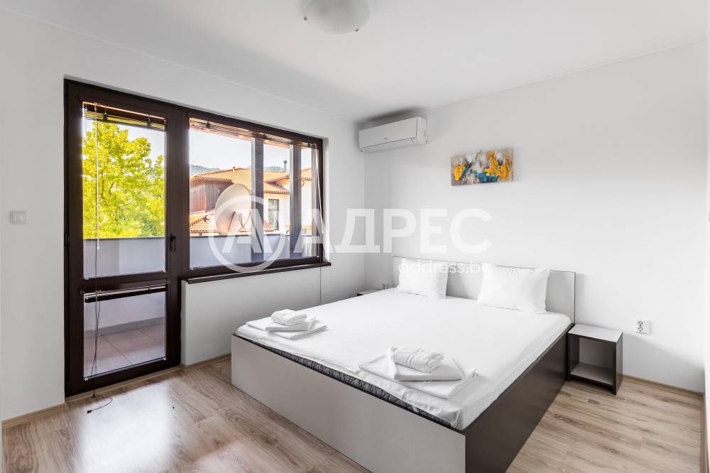 Втори етаж: три спални – една със самостоятелна баня, две с общ санитарен възел, както и тераса с великолепна гледка към планината.
