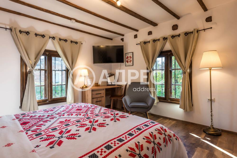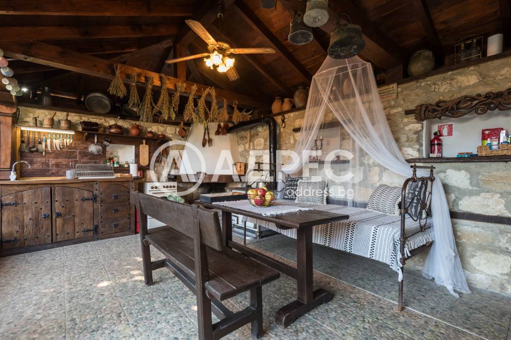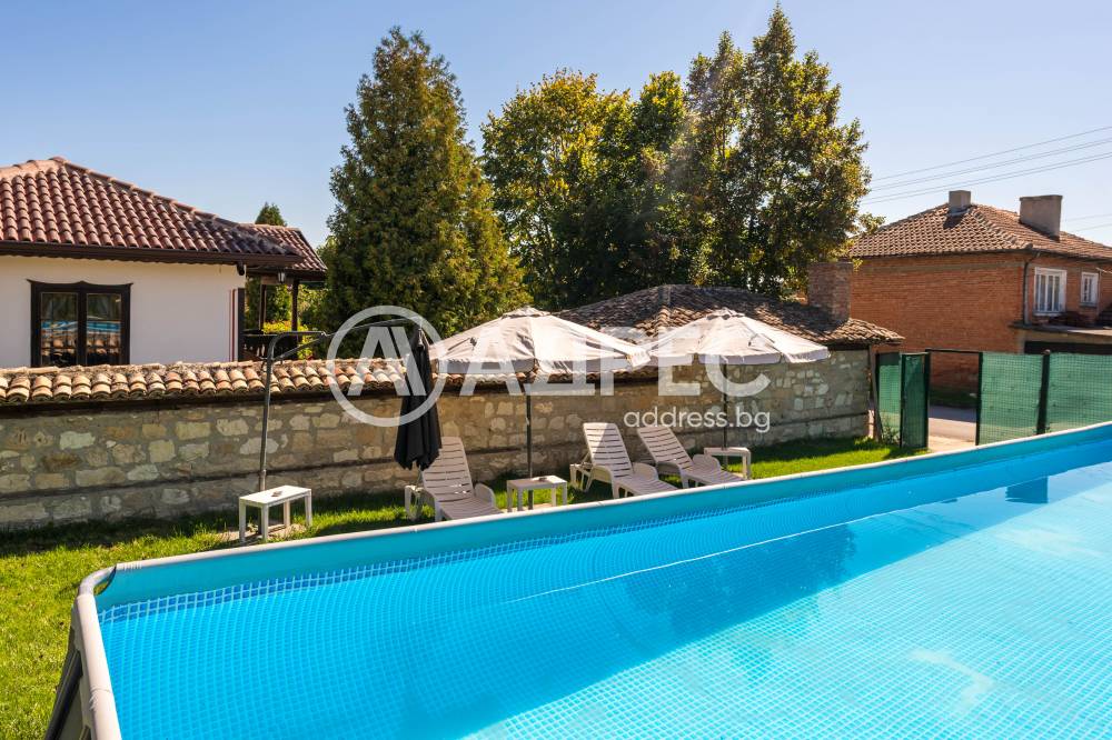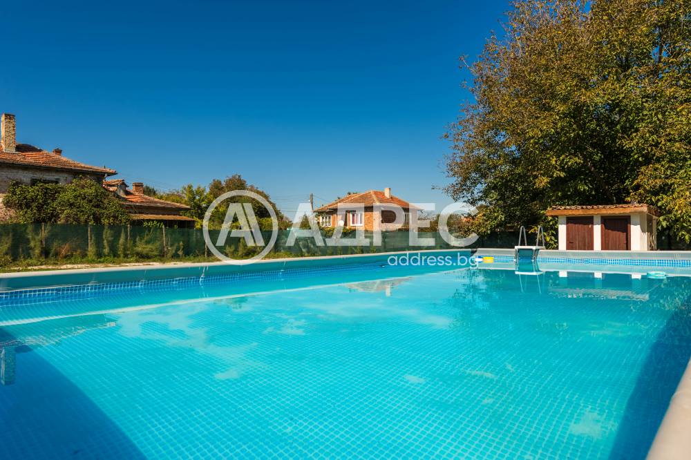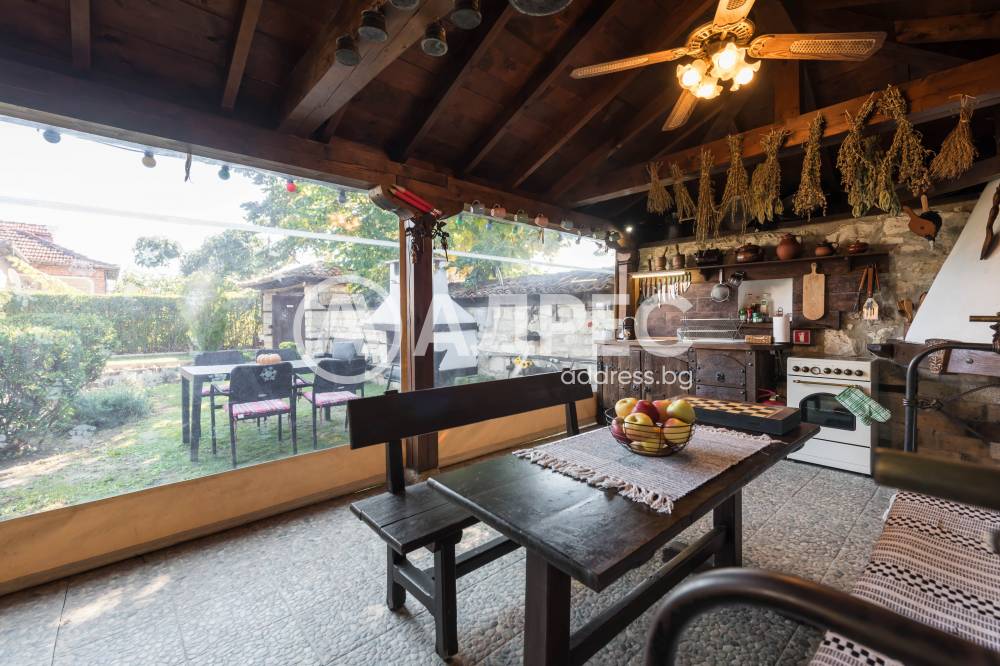Къща, която се отличава с автентична фолклорна стилистика и съвременни решения в интериора, разположена в екологично чист и спокоен за живеене район, с много зеленина, добра инфраструктура, на 37км. от Варна,. Къщата е част от мащабен имот на площ от 1912кв.м /парцел/, в който са съчетани жилищни удобства, добре реставрирани етнографски кътчета, кът за зеленчукова градина, голям басейн, къща за гости и пр. Имотът се състои от три постройки - основаната сграда 80квм -чиста площ - две спални с бани и тоалетни, веранда, таверна, с вградена кухня, камина, обособен кът за хранене, пристройки, които представляват, 2 спални, баня и тоалетна, склад и общо помещение с малка кухня около 60квм. Лятна кухня, която е също допълнителна постройка с площ 24кв.м, много удобна и напълно оборудвана за ползване през топлите сезони. Имотът разполага с голям открит басейн.