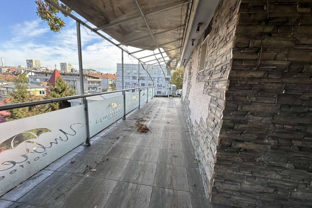 "АДРЕС" недвижими имоти предлага заведение -110кв.м, с две тераси: северна тераса /с площ от 65 кв.м./ и южна тераса /с площ от 82 кв.м./. Заведението се намира в Идеалния център на града, с панорамна гледка, на пешеходна зона. В сградата има асансьор. Имотът се състои от търговска част, бар, два отделни санитарни възела, стая за персонала, малък склад и кухненски бокс. Отоплението е с климатици.