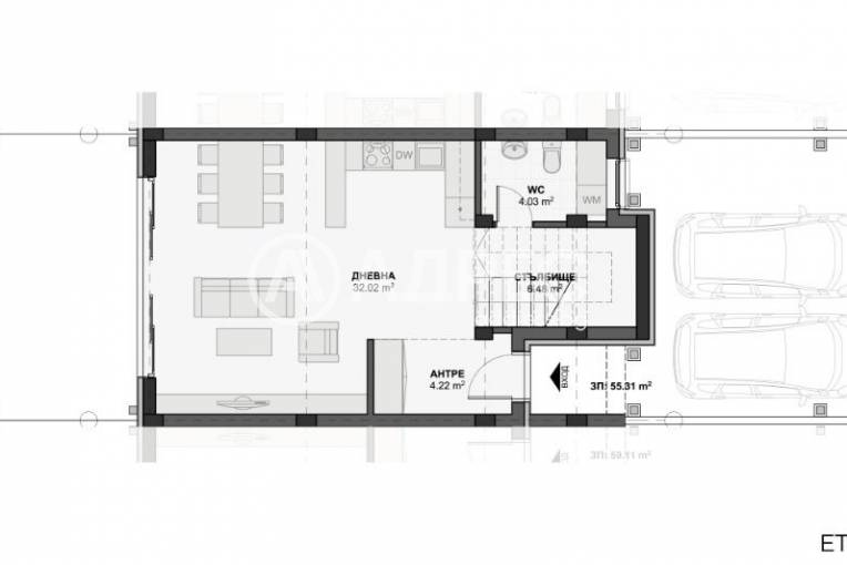 Агенция " Адрес" предлага в тих и спокоен район, еднофамилна самостоятелна къща, в група от пет редови къщи,в процес на строеж.В момета е на акт 14. Разпределението на имота ще е следното:
