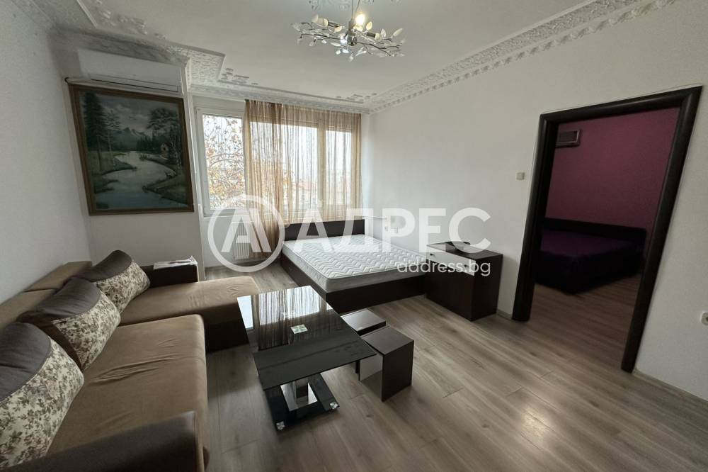 "АДРЕС" недвижими имоти предлага тристаен апартамент на Дом на книгата. Жилището разполага с кухненски бокс с трапезария, две спални, баня с тоалетна, тераса и килер. Отоплението е с ТЕЦ и климатици, като е напълно оборудвано с всички необходими ел. уреди за едно домакинство. Подходящо за семейство и студенти.