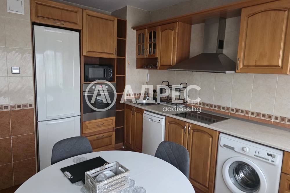 Предлагаме под наем светъл и уютен тристаен апартамент, разположен на удобна и комуникативна локация. Жилището е с функционално разпределение и е подходящо както за семейство, така и за работещи хора. Апартаментът се състои от просторна дневна , кухня с трапезария, две самостоятелни спални, баня с тоалетна, коридор и тераса. Имотът е напълно обзаведен и оборудван с необходимите електроуреди – хладилник, печка, пералня, климатик и телевизор. Жилището е в добро състояние, поддържано и готово за нанасяне. Намира се в близост до магазини, училища, спирки на градски транспорт и други удобства.