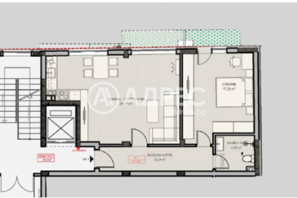Степен на завършеност: подова замазка, положена фина мазилка на стените и таваните, ВиК- до тапа, Ел. - до точка, PVC дограма, външна топлоизолация, монтирана входна врата, отлично завършени общи части и хидравличен асансьор.Към всеки апартамент принадлежи мазе включено към цената!