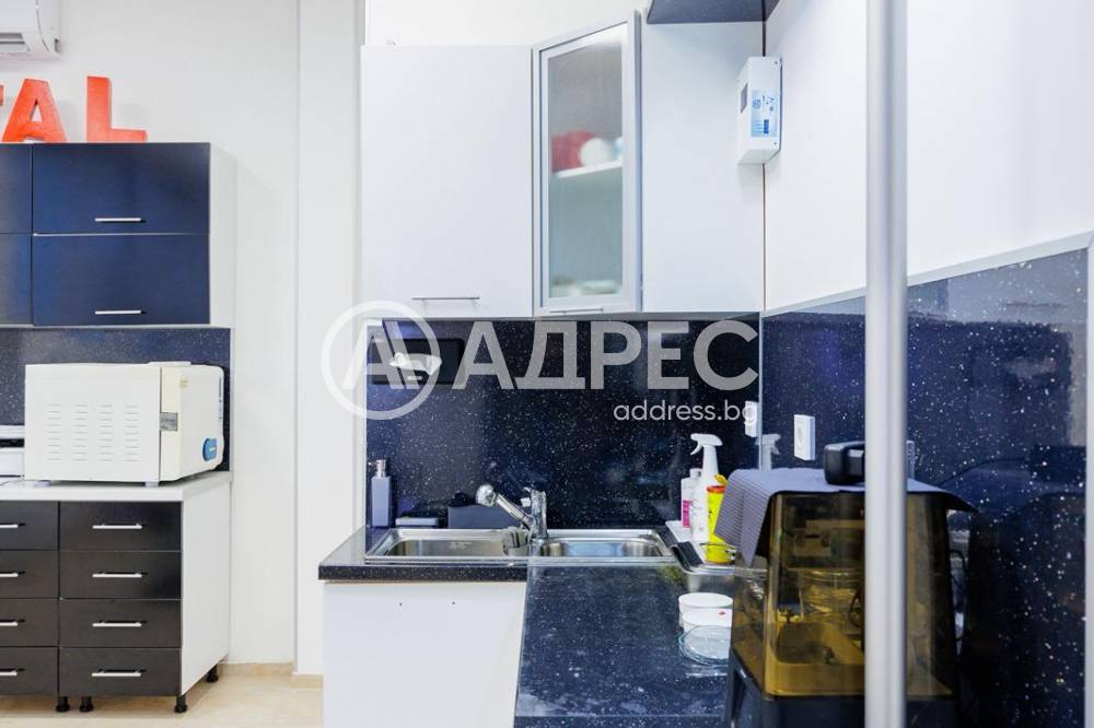 Комуникативна част на града, с удобен достъп за пациенти и персонал. Разпределение: просторна приемна с рецепция ,работен кабинет с модерно оборудване, две санитарни помещения отделна тоалетна за пациенти и отделна за персонал. Оборудване: