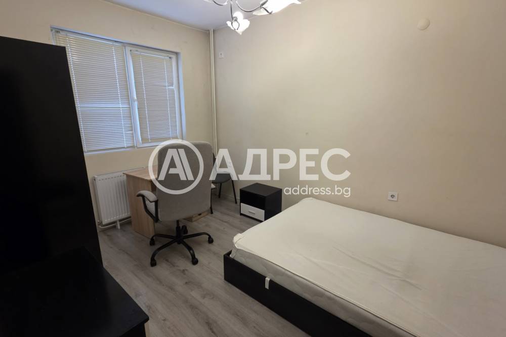 "АДРЕС" недвижими имоти предлага тристаен апартамент, находящ се в непосредствена близост до Пожарната и Медицинския университет. Жилището се състои от: две спални, кухненски бокс с просторна всекидневна, баня с тоалетна, тераса. Отоплението е с климатици, като е напълно оборудвано с всички необходими ел. уреди. Подходящо за семейство и студенти.