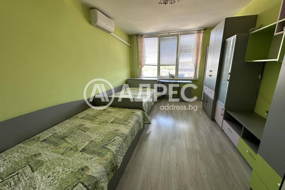 "АДРЕС" недвижими имоти предлага тристаен апартамент в района на училище "Анастасия Димитрова". Жилището се състои от: две спални, баня и тоалетна, две тераси, кухненски бокс с всекидневна. Отоплението е с ТЕЦ и климатици, има централна топла вода и е оборудвано с всички необходими ел. уреди за едно домакинство. Подходящо за студенти и семейства.
