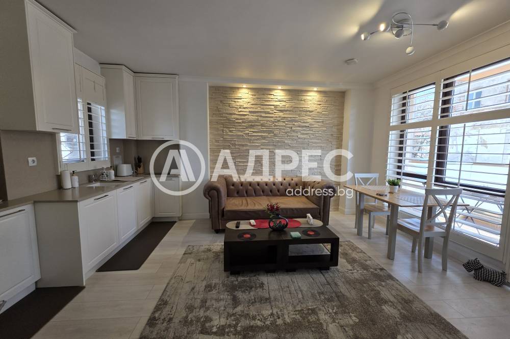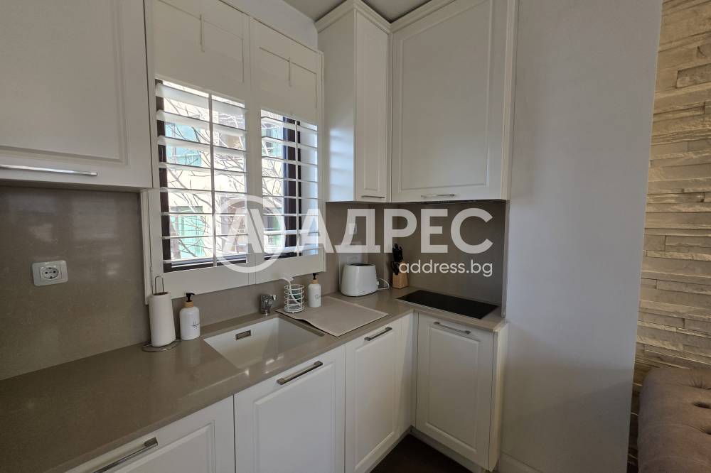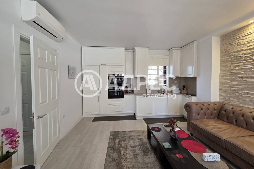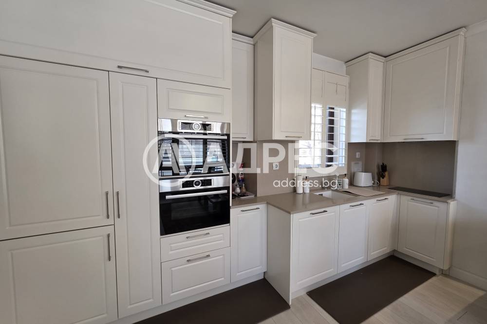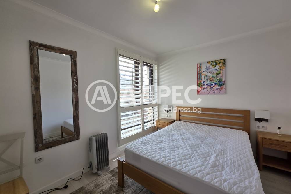 Апартаментът е напълно обзаведен с внимание към детайла и оборудван с висок клас електроуреди Bosch – пералня, съдомиялна, микровълнова фурна и фурна за готвене, както и климатик Daikin.