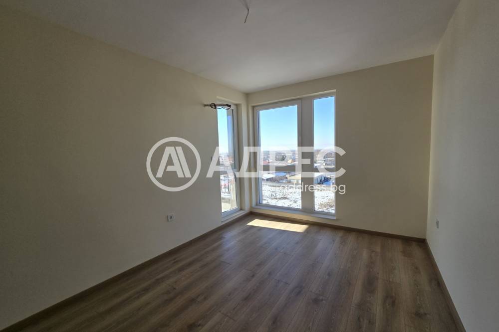Тристаен апартамент с площ от 1002 кв.м. в нова сграда с акт 16 в кв. Христо Смирненски. Разпределението е следното: просторта дневна с кухненска част, две спални, баня с тоалетна, коридор и тераса. Имотът се предлага завършен до ключ.