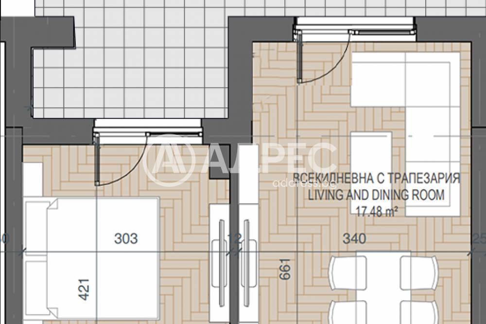 Предлагаме на Вашето внимание двустаен тухлен апартамент, състоящ се от спалня,хол с бокс, баня с тоалетна и голяма тераса..Може да бъде закупено паркомясто на отделна цена.