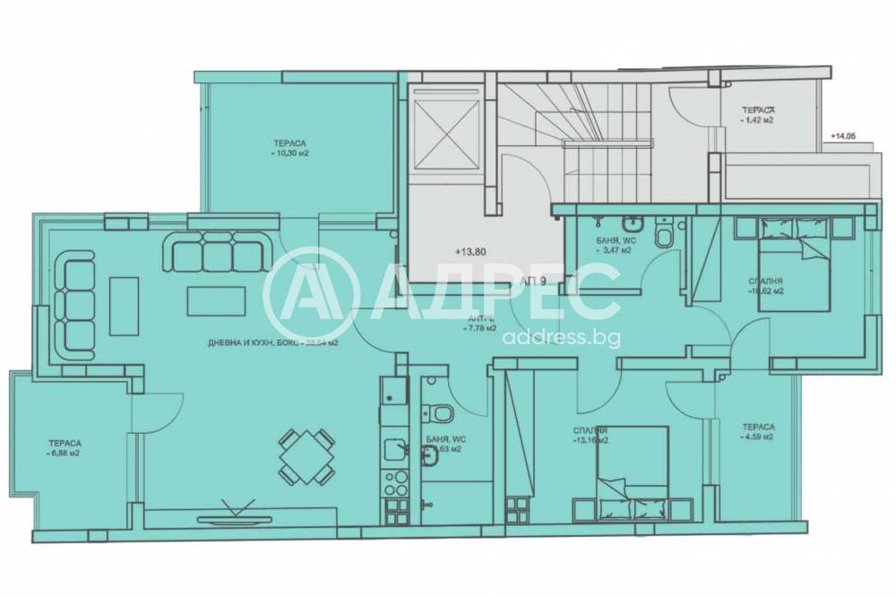Представяме на Вашето внимание тристаен, просторен апартамент на ТОП локация - Каменица 1. Жилището се намира на етаж 6 от седеметажна малка бутикова сграда само с 10 апартамента. Апартамента е с чиста жилищна площ 120 м2 и се състои от просторен хол от 39 м2, две спални, всяка от които с баня и тоаетна, коридор и три тераси. Изложение - запад.