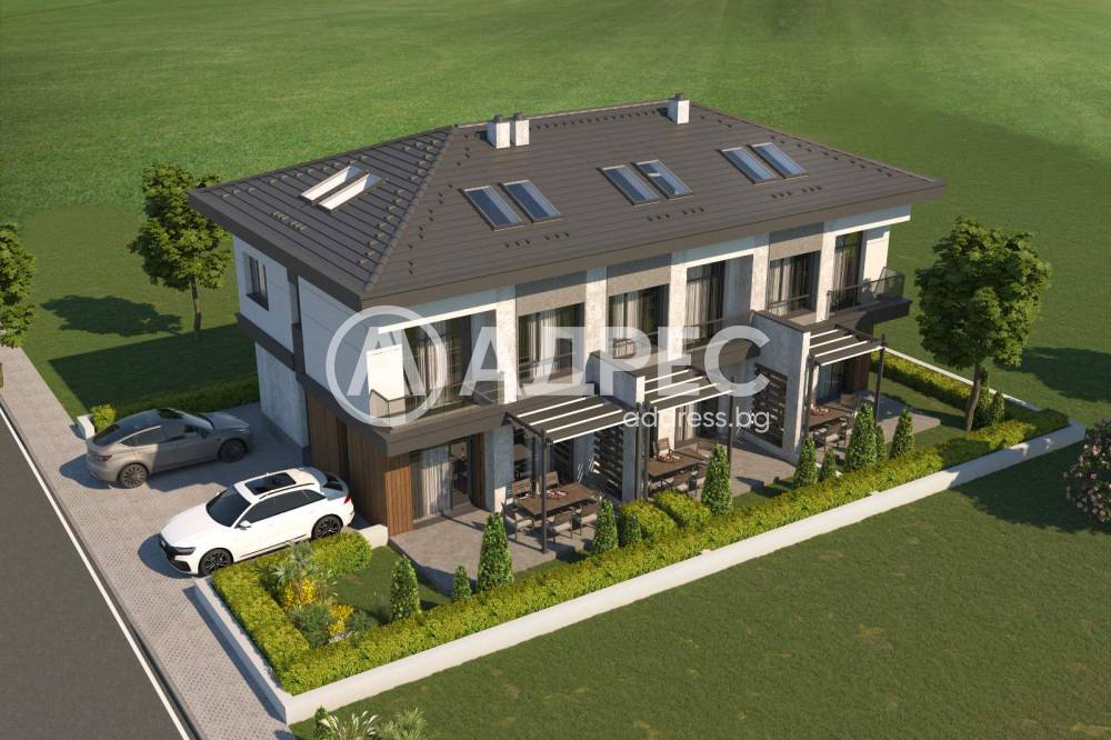 Къща 2 - първи етаж: дневна с кухненска част с излаз на веранда, баня с тоалетна и складово помещение. Втори етаж - три спални (двете детски са по 12 кв.м, родителската е 15 кв.м.), баня с тоалетна и излаз към таванско помещение с площ от 40 кв.м. Дворното място към къща 2 е 20 кв.м. Цената е 175 000 евро. Към нея могат да бъдат закупени 2 бр. парко места.