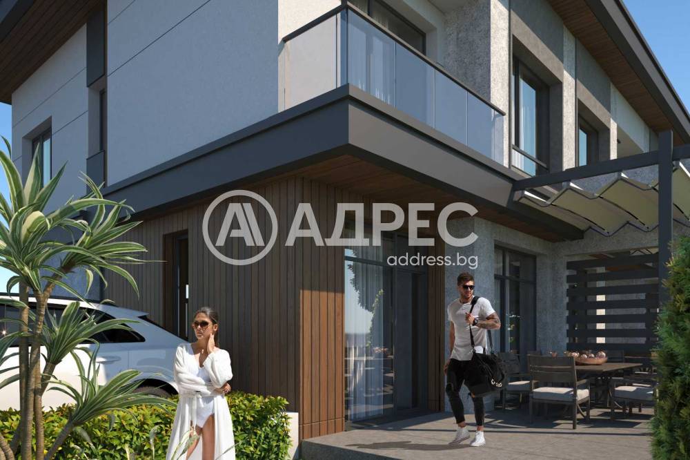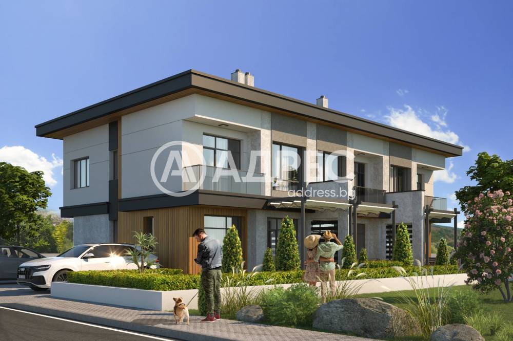 Къща 1 - първи етаж: дневна с кухненска част с излаз на веранда, баня с тоалетна и складово помещение. Втори етаж - три спални (двете детски са по 12 кв.м, родителската е 15 кв.м.), баня с тоалетна и излаз към таванско помещение с площ от 40 кв.м. Дворното място към къща 1 е 40 кв.м. Цената е 185 000 евро. Към нея могат да бъдат закупени 2 бр. парко места.