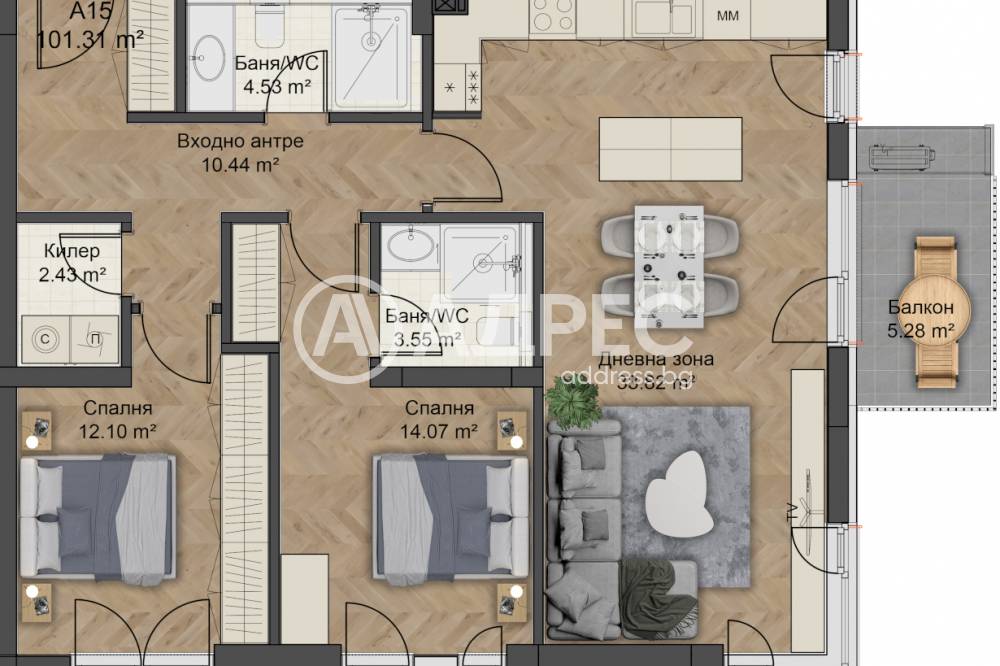 Тип Имот: Тристаен апартамент