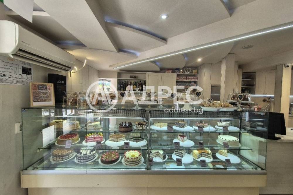СЪСТОЯНИЕ: Сградата е самостоятелна,на три нива. Заведението е със статут кафе,сладкарница и сладкарски цех. Продава се с цялото оборудване и обзавеждане, така както го виждате на снимките.