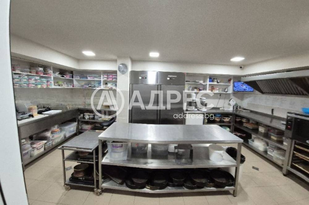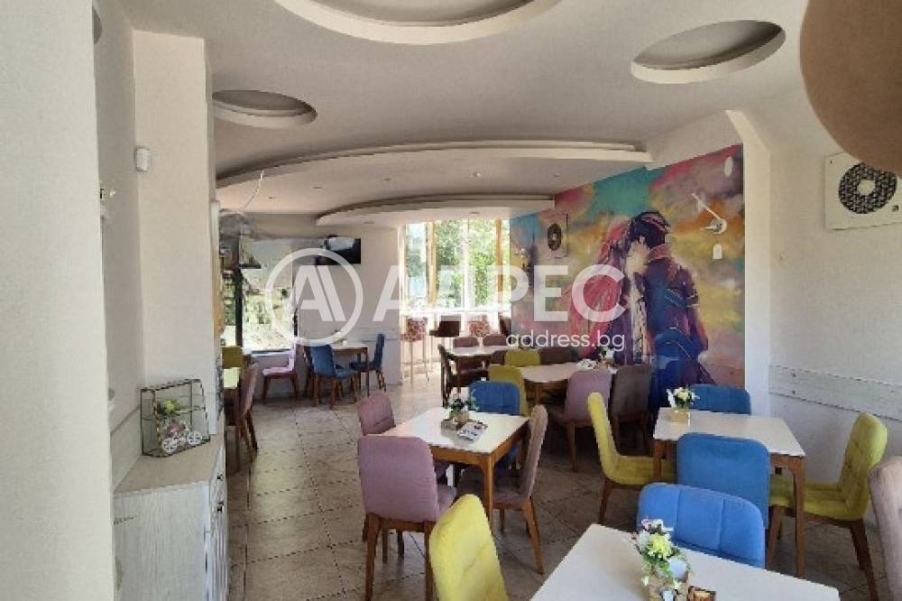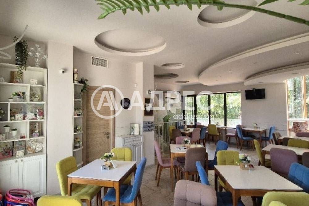 Имота се състои от 190 кв. м. На сутеренно ниво се намира кухнята ,на партера е позиционирана търговската част,а на първи- клиентска част.