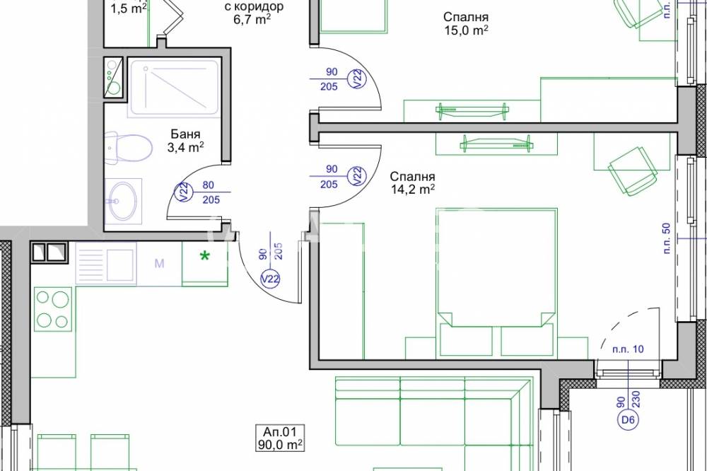 Тип Имот: Тристаен апартамент