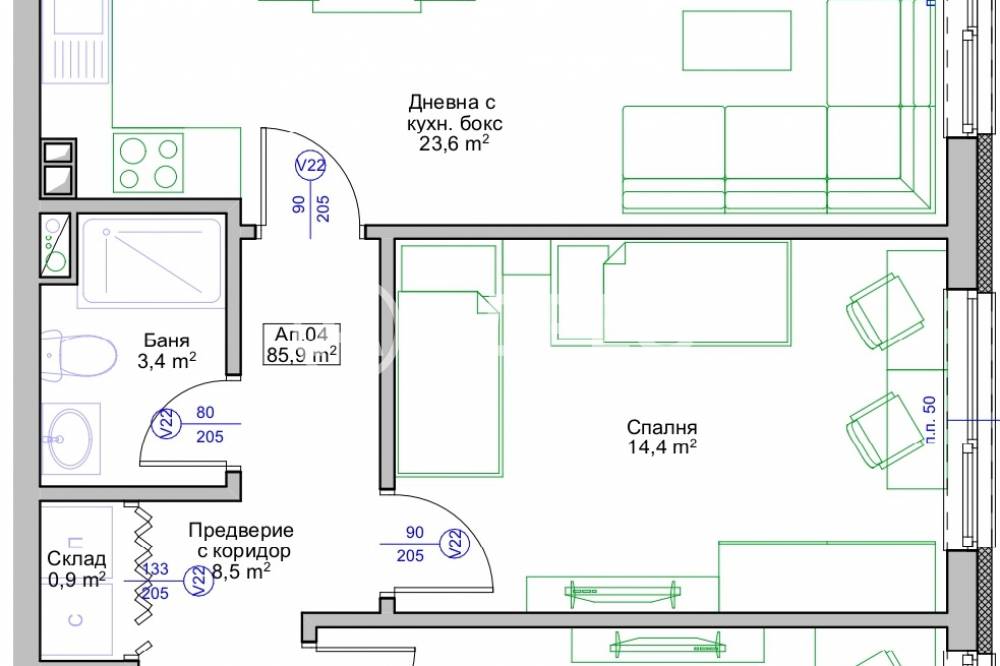 Тип Имот: Тристаен апартамент