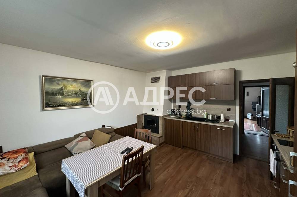 Разпределение: просторен хол с кухненска част, две спални, баня с тоалетна и коридор.