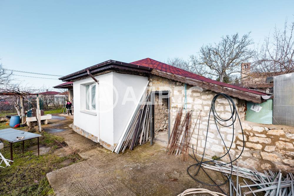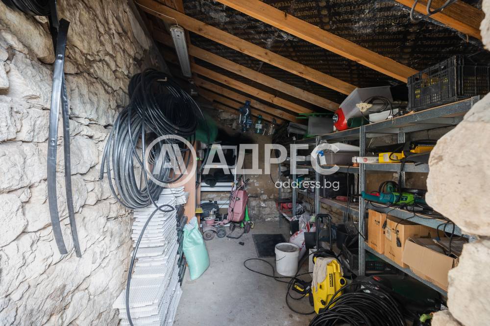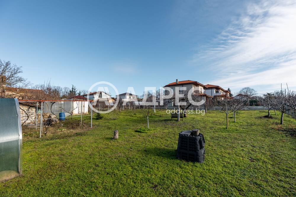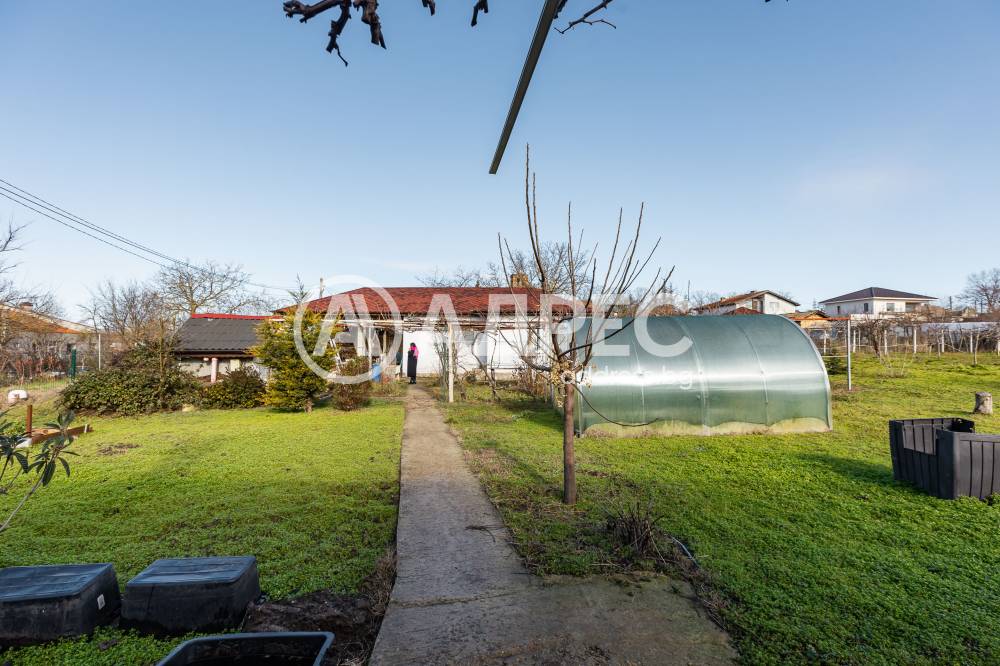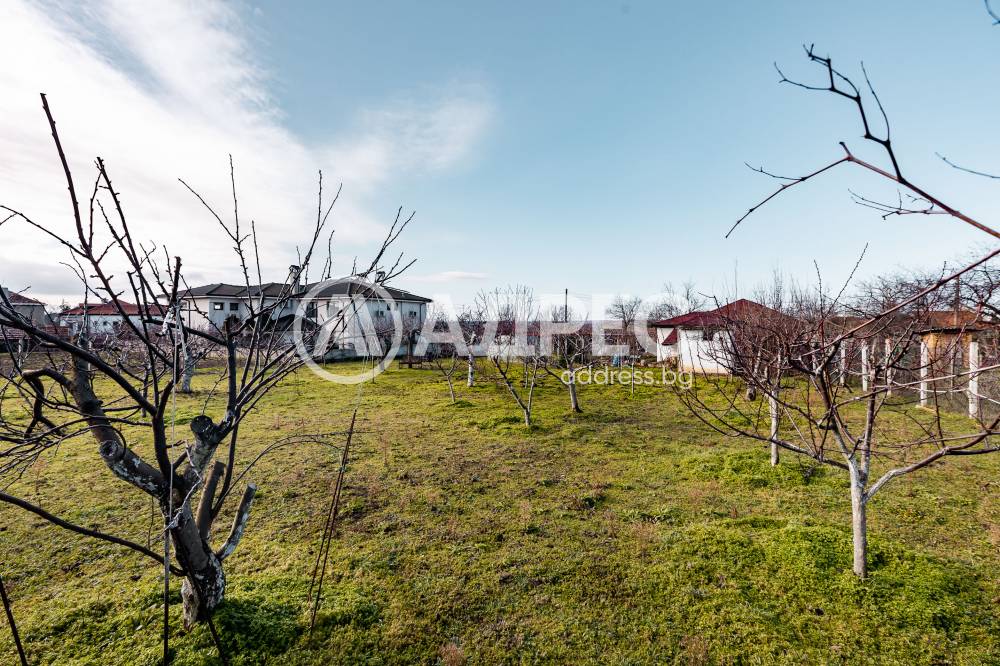 Поземлен имот с площ 1343 кв.м с предназначение на територията: урбанизирана, начин на трайно ползване: ниско застрояване ( до 10 м). В имота има Еднофамилна жилищна сграда на един етаж, със застроена площ 58 кв.м, състояща се от две стаи и салон; Самостоятелна сграда/ Лятна кухня с площ 35 кв.м и Селскостопанска сграда / навес / с площ 29 кв.м. Налични са и оранжерии за краставици, домати, както е и богат на праскови, смокини и др. Като екстра и наличие на подземна винарна.