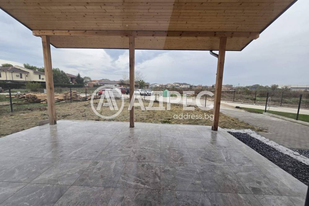 екстериор: завършена веранда, павирани паркоместа, павета по пътеките около къщата, гранитогрес на верандата, ограда;
