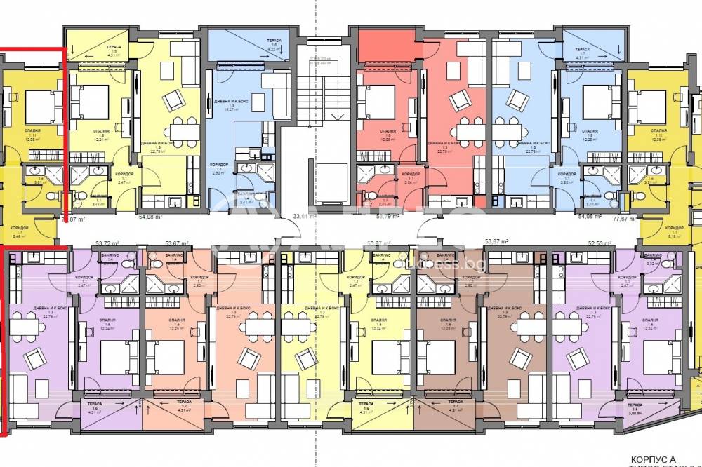 Тристаен апартамент в затворен комплекс в с. Равда. Площ на имота 88,07 кв.м., етаж 5 от 6, асансьор. Състои се от антре, всекидневна с кухенски кът и тераса, две спали,две бани с тоалетни. ЗАВЪРШВАНЕ ДО КЛЮЧ. Срещу допълнително заплащане има възможност за пълно обзавеждане.Такса поддръжка 10 евро на кв. м. Към всеки имот може да бъде закупено паркомясто от 14 000 до 18 000 евро