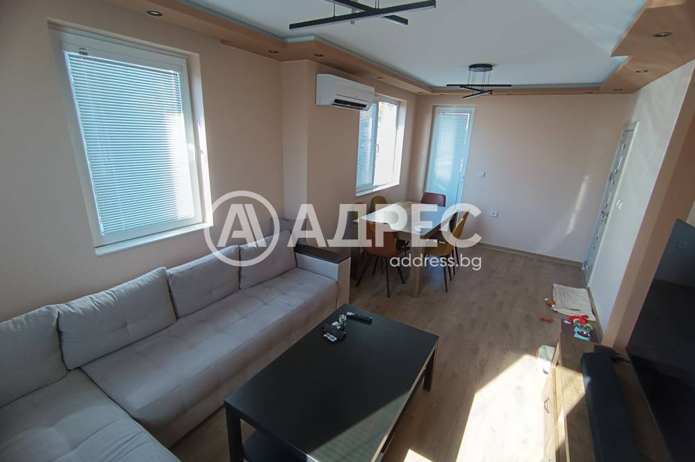 Само от "Адрес"! Продава се тристаен апартамент ново строителство! Напълно обзаведен! Жилището се състои от две спални, дневна, кухня, баня с тоалетна, килер, две тераси и антре! Нова входна блиндирана врата, дограма, интериорни врати, ВиК и електрическа инсталации! Подовете са с ламинат и теракот! Съвременен дизайн и обзавеждане! Кухня, изработена по поръчна, с вградени електроуреди! Отопление: климатици - два броя! В жилището има и газ! Изложение: югоизток!