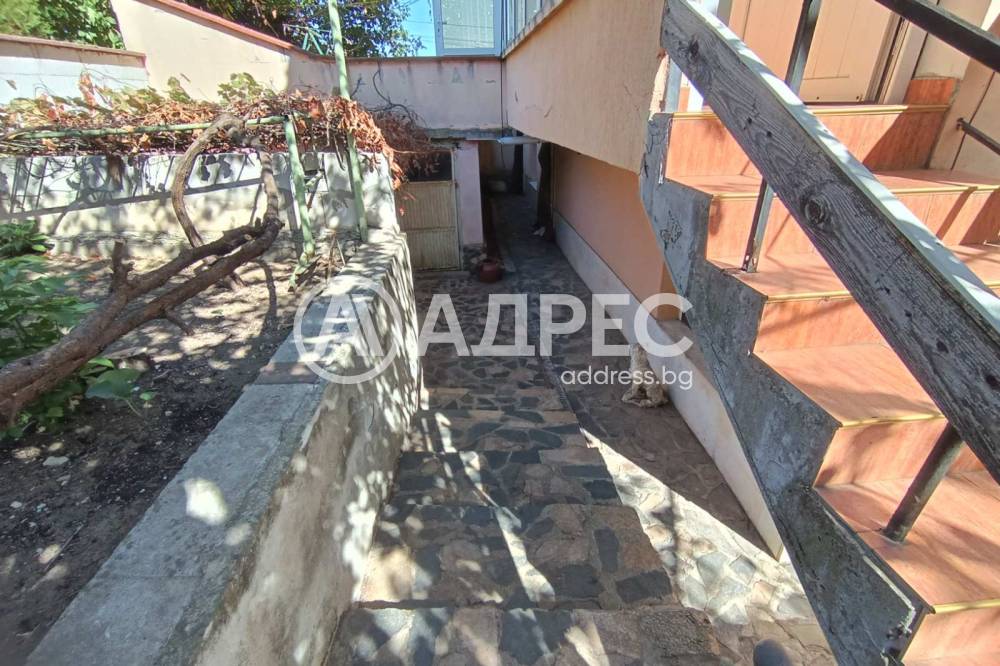 Продава се триетажна къща в тих и спокоен квартал. На приземния етаж са разположени два гаража, баня с тоалента и една стая (фитнес). На първия етаж има голяма кухня с трапезария, една спалня, баня с тоалента и две тераси. От терасата има достъп до двора на имота. На втория етаж има две спални, хол и баня с тоалетна. Сменена е дограмата на цялата къща. Подовете са с теракот, ламинат и паркет! Къщата се продава с наличното обзавеждане! Имота разполага с второстепенна постройка която е направена на механа с кухня и камина - 55 кв.м. Имотът е газифициран!