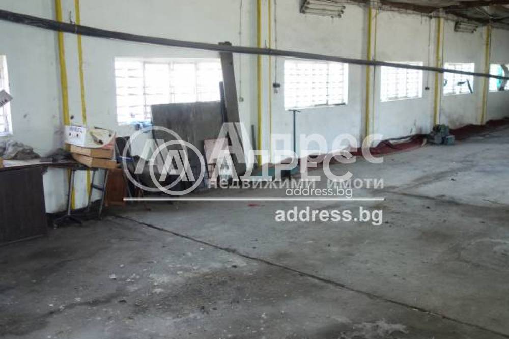 Голяма, промишлена, монолитна сграда с достъп в нея на едрогабаритна техника.