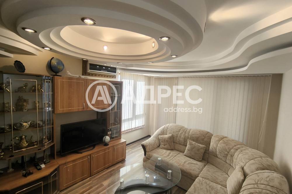 Продава се двустаен разширен апартамент с площ 76 кв. м., който се състои от спалня, хол, дневна с кухня, баня с тоалетна, килер и една голяма тераса. Холът може да се обособи като втора спалня. Жилището е с изцяло подменена ПВЦ дограма, подменени интериорни врати и входна блиндирана врата. Съвременен дизайн и обзавеждане! Подменена е електрическата инсталация! Подовете са с ламинат и теракот, таваните са с изолация и изградена система за LED осветление. Отопление: два броя климатика! Продава се с наличното обзаведане!