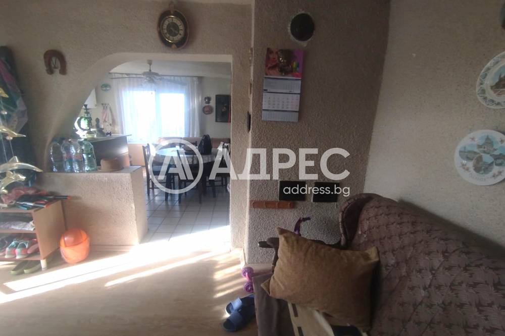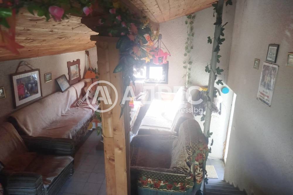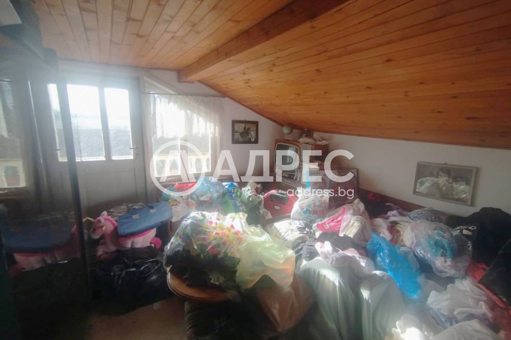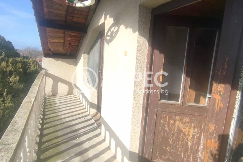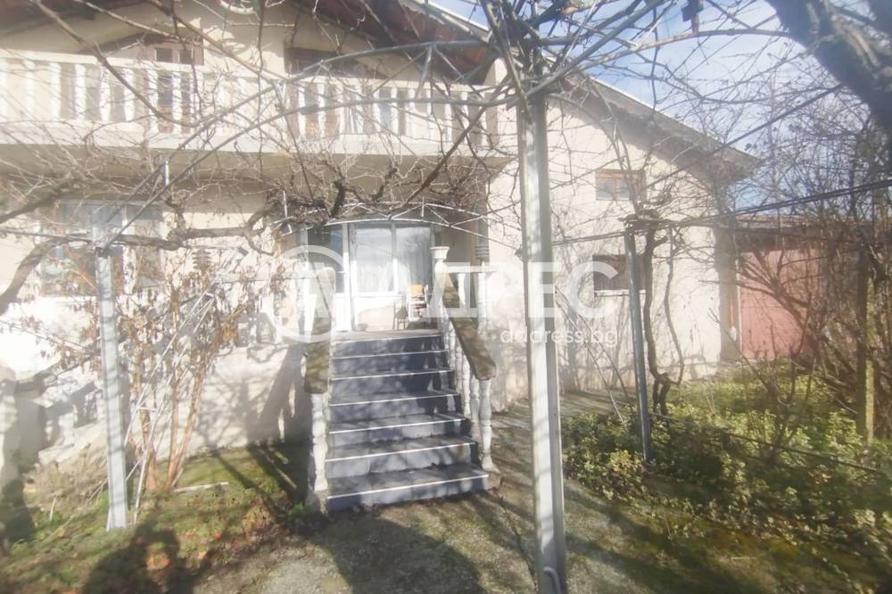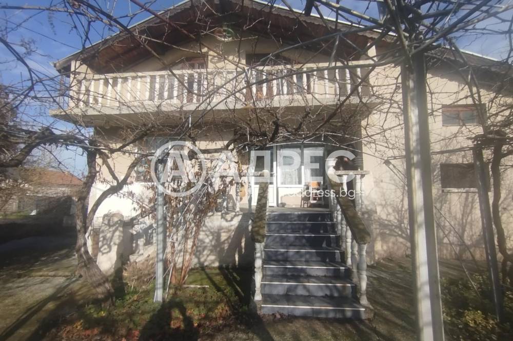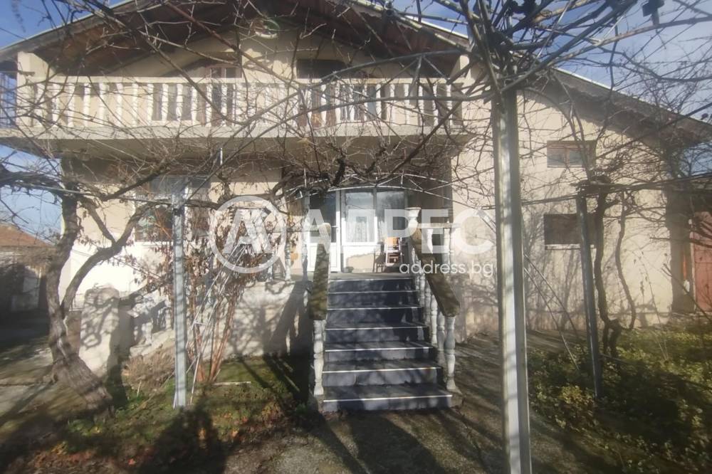 Предлагаме на Вашето внимание ДВУЕТАЖНА МАСИВНА ЖИЛИЩНА СГРАДА с РЗП 140 кв.м., находяща се в дворно място, цялото с площ от 3085 кв.м. Къщата е над избен етаж и е със следното разпределение: Първи етаж-просторна дневна с кухн.бокс, външни стълби към битова стая на междинен етаж и вътрешни стълби от битовата стая към втори етаж, където са разположени две спални с коридор и килер. Просторна веранда, обхващаща двете спални. Имотът няма вътрешен санитарен възел, но има възможност да се обособи такъв. Подови настилки-теракота, лам.паркет и мокет, латекс по стените, смесени дограми. В дворното място са разположени ГАРАЖ, допълнителни стопански постройки, както и МАСИВЕН НАВЕС с площ от 245 кв.м., който е подходящ за различни бизнесинициативи.
