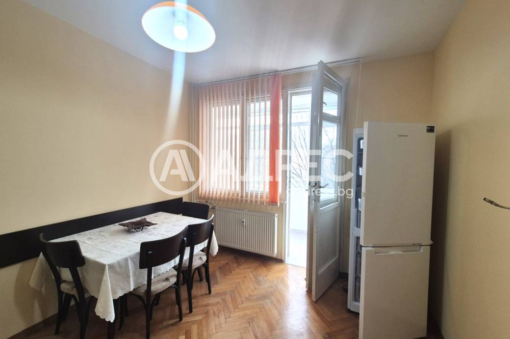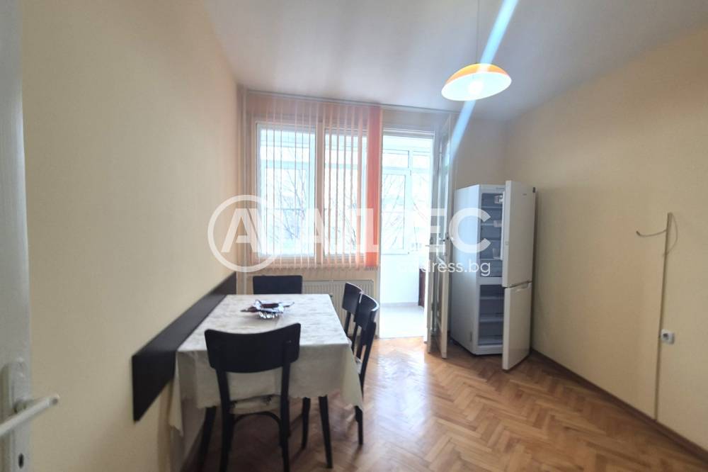Предлагаме Ви, двустаен апартамент под наем, в района на Градски хали. Жилището се състои от просторна кухня, хол, спалня, коридор с вграден гардероб, баня и тоалетна в общо помещение. Всички стаи са с излаз на тераси, две от които остъклени. Апартаментът се предлага обзаведен и оборудван с мебели и техника, необходими за едно домакинство. Отоплението е на ТЕЦ, а за охлаждане има монтиран климатик. След освежителен ремонт. Не се допускат домашни любимци. За повече информация и осъществяване на огледи: Ирена Божанова – 0896300129.
