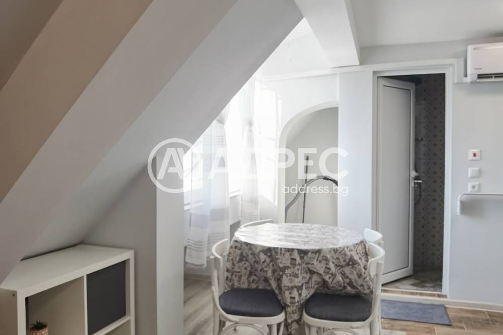 Предлагаме Ви кокетно студио в Центъра на града, в района на училище "Отец Паисий". Представлява спалня, хол и кухня в едно, баня и санитарен възел. Отдава се напълно обзаведен и оборудван с мебели и техника, смарт телевизор, инверторен климатик, готварска печка, микровълнова. Входът е с контрол на достъп. Свободно паркиране в района. Не се допускат домашни любимци. Можем да организираме оглед в удобно за Вас време, включително през почивните дни. За повече информация и осъществяване на огледи: Диана Михайлова- 0890300124