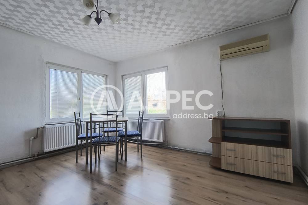 Предлагаме Ви под наем етаж от масивна къща, със самостоятелен вход, представляващ: антре, хол-трапезария, кухненски бокс, спалня, мокро помещение, баня и тоалетна отделно. Имотът е обзаведен с мебели и техника с голямо паркомясто. За повече информация и огледи: 0899300128 Татяна Занкова