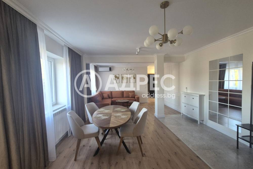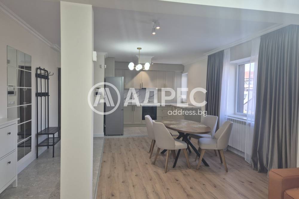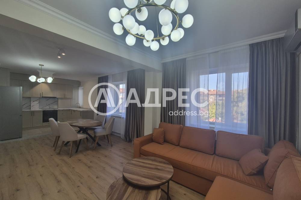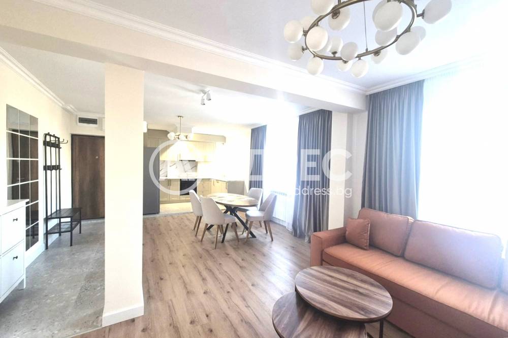 Предлагаме Ви тристаен апартамент под наем, в район Хъшове, представляващ просторна всекидневна с кухнеска част, две спални, Б/Т общо, тераса. Апартаментът е в отлично състояние, стилно обзаведен и оборудван с всичко необходимо – вградена фурна с керамични котлони, абсорбатор, пералня, сушилня, хладилник, съдомиялна, телевизори. Отоплението е на газ. Има поставени климатици за охлаждане. Отдава се дългосрочно! ПЪРВИ НАЕМАТЕЛ! В цената на наема е включено и ползването на ПАРКОМЯСТО в подземен гараж. Сградата е ново строителство, отлично поддържани общи части, контрол на достъп. Не се допускат домашни любимци. В района има свободни места за паркиране по всяко време. За повече информация и огледи: Ирена Божанова - 0896300129.